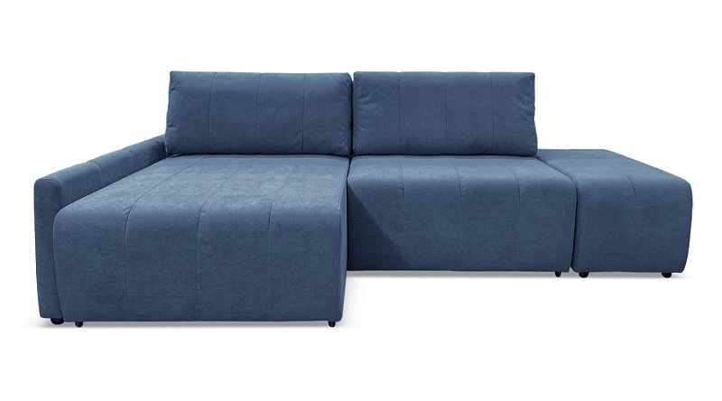 Угловой диван Оникс с пуфом Синий велюр